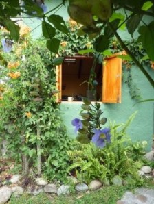 I had seen the perfect thing. On past mystically-inspired ventures to Ecuador to sip the psychedelic cactus with my favourite snake goddess and keeper of the dark spices in the secret recipe of the cosmic casserole I had passed a little green house, tucked up in the skirts of the shaman’s enchanted farm just outside town. It was a shy mud brick shack, hidden behind a tumble of flowering vines, with a wonky chimney and a fuzzy dog on the porch.