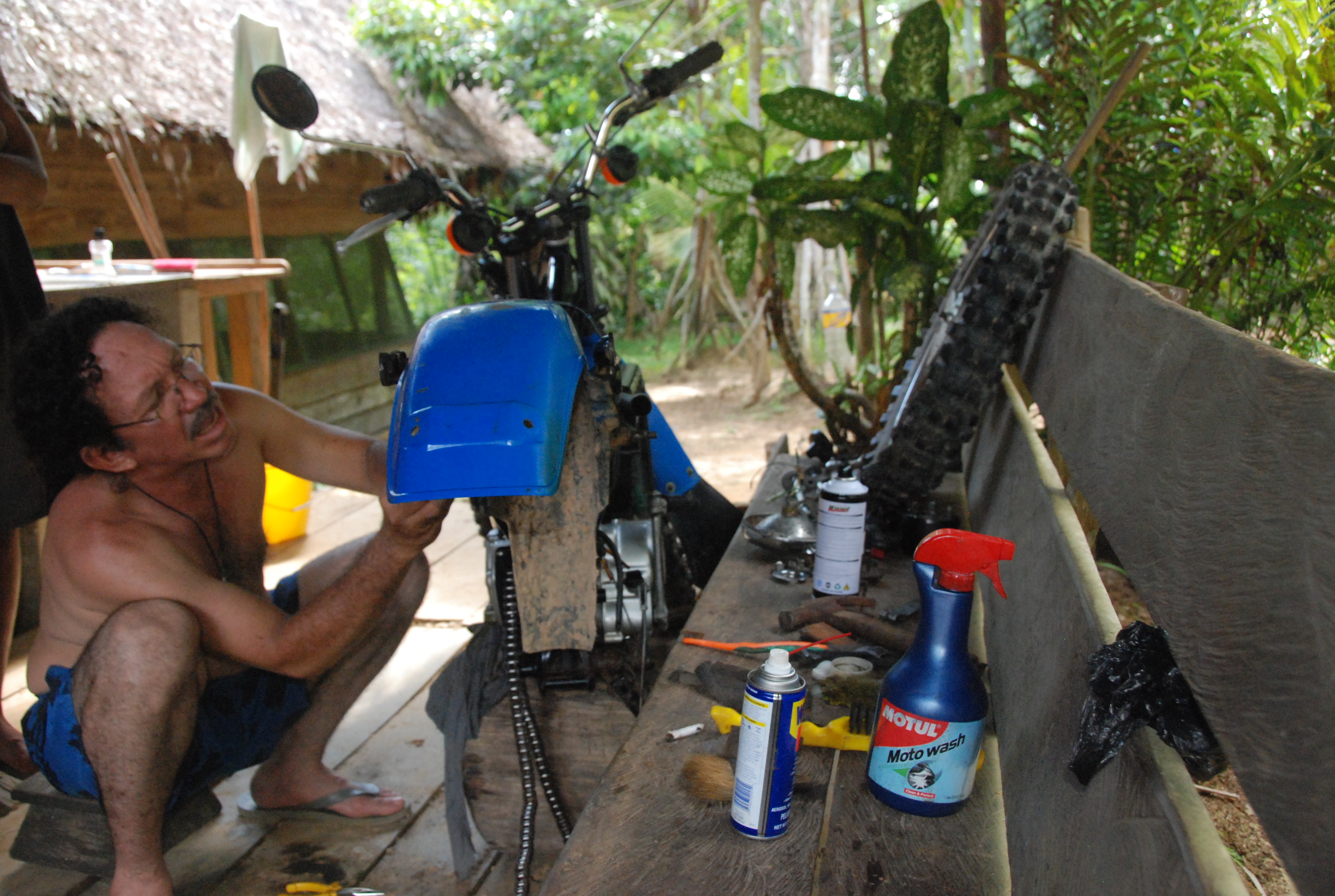 And Viejo… singing as he tenderly stripped down his Yamaha. Viejo, caught in rapture at the tinkling of motorbike parts as they sun-dried on the washing line. Viejo, carving me a harp. Viejo, teaching me to play it as the hallucinations and the nausea washed over me. Viejo, offering me a litre of pure tobacco juice, saying only ‘Drink. All. Vamos!‘.