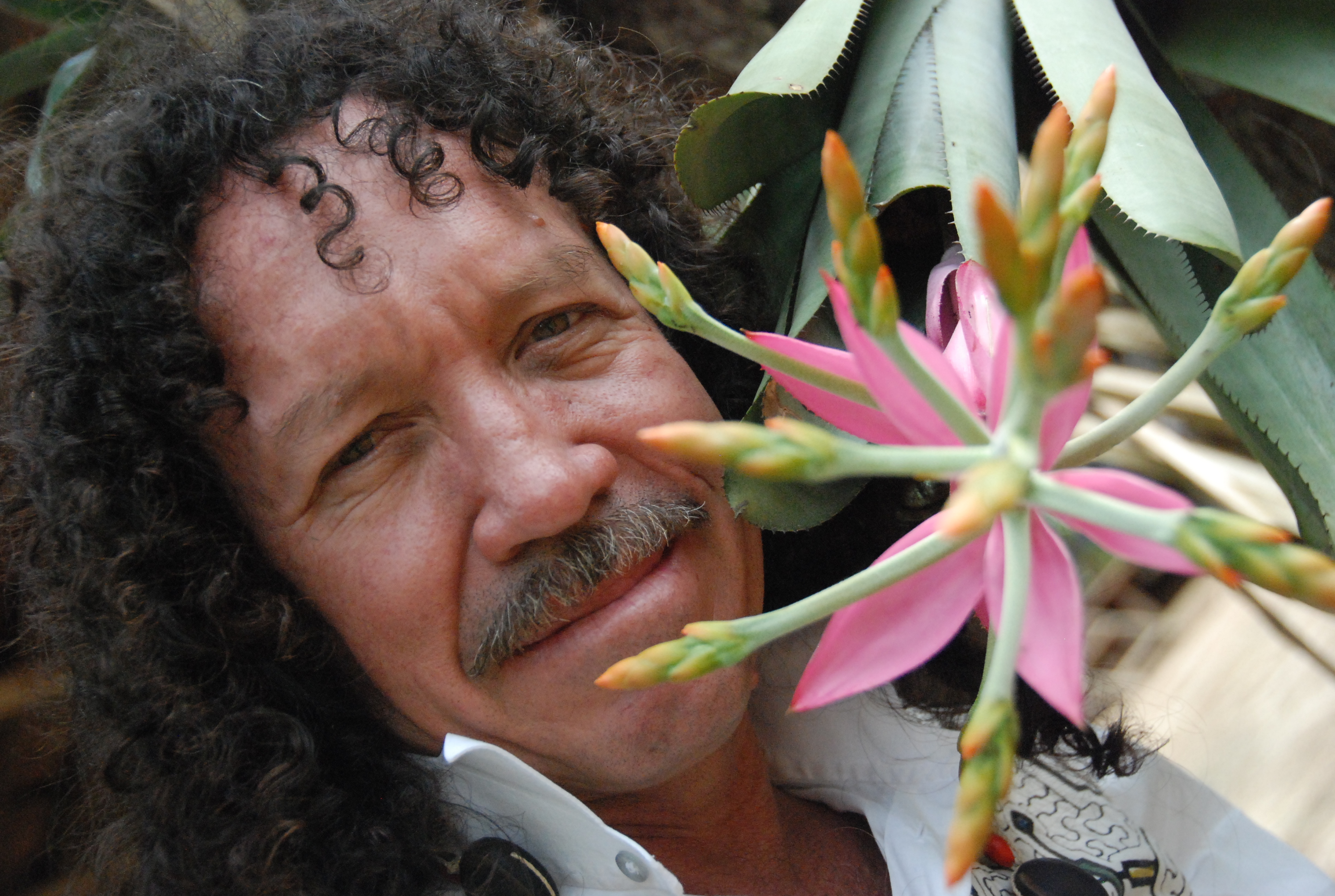 His practice is a jungle garden. His ‘consulting room’ is air conditioned by plants, and his library is living all around him; in blossoms, cloud, roots, shoots, animal visitors and continual dialogues with nature who informs his powers of diagnosis and prescription.